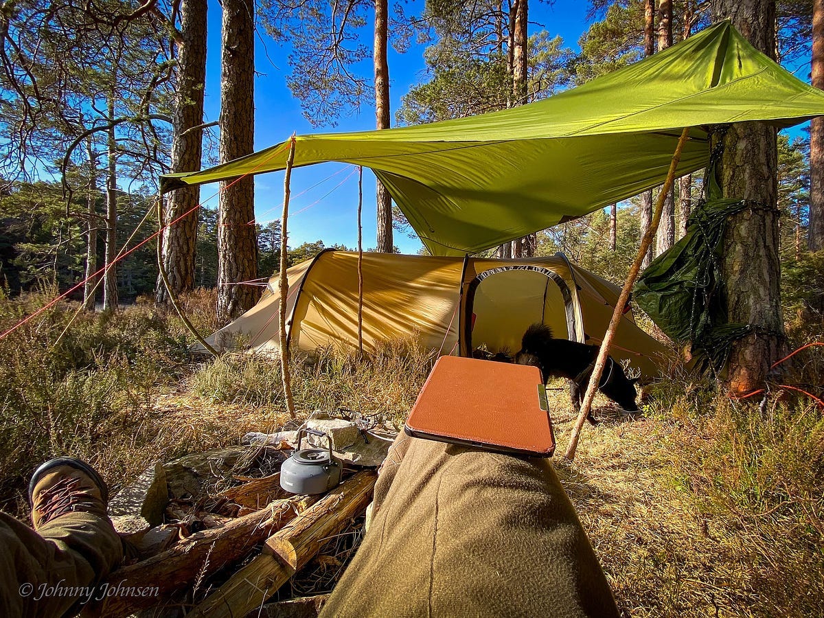 Vi tar dette som en liten trenings tur med tanke på å ligge rolig på post og gjerne få tatt et bilde av dyr. Det er fersk elg og rådyr skit rett ved her vi har satt opp teltet.