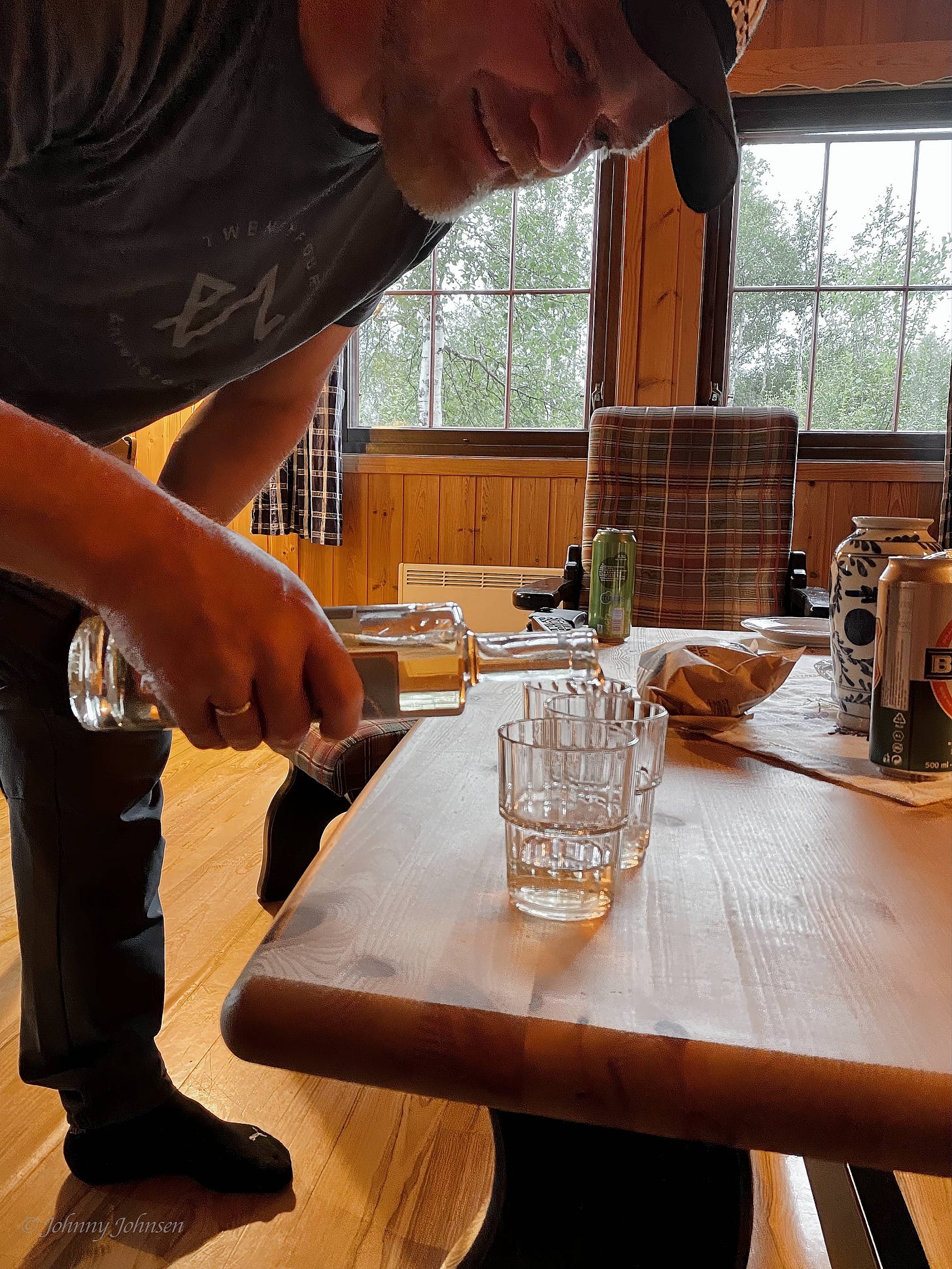 Planen var da at de to andre kom oppover tidlig lørdags morgen og at vi startet turen da. Men værmeldingen ble ikke som planlagt, så avreise til Trondsbu ble like godt bare utsatt til søndagen siden vi allerede hadde leid hytten for hele helgen. Dette gjorde at de andre to kunne sove litt frempå hjemme i sin egen seng på lørdagen for så å komme oppover akkurat når de måtte ønske det i løpet av dagen, for så å overnatte i hytta sammen med oss andre frem til søndagen. Dette ble egentlig en kjempe god løsning siden ikke alle kjenner hverandre fra før, det er greit å bli litt kjent over en god middag med litt godt i glasset før turen starter.