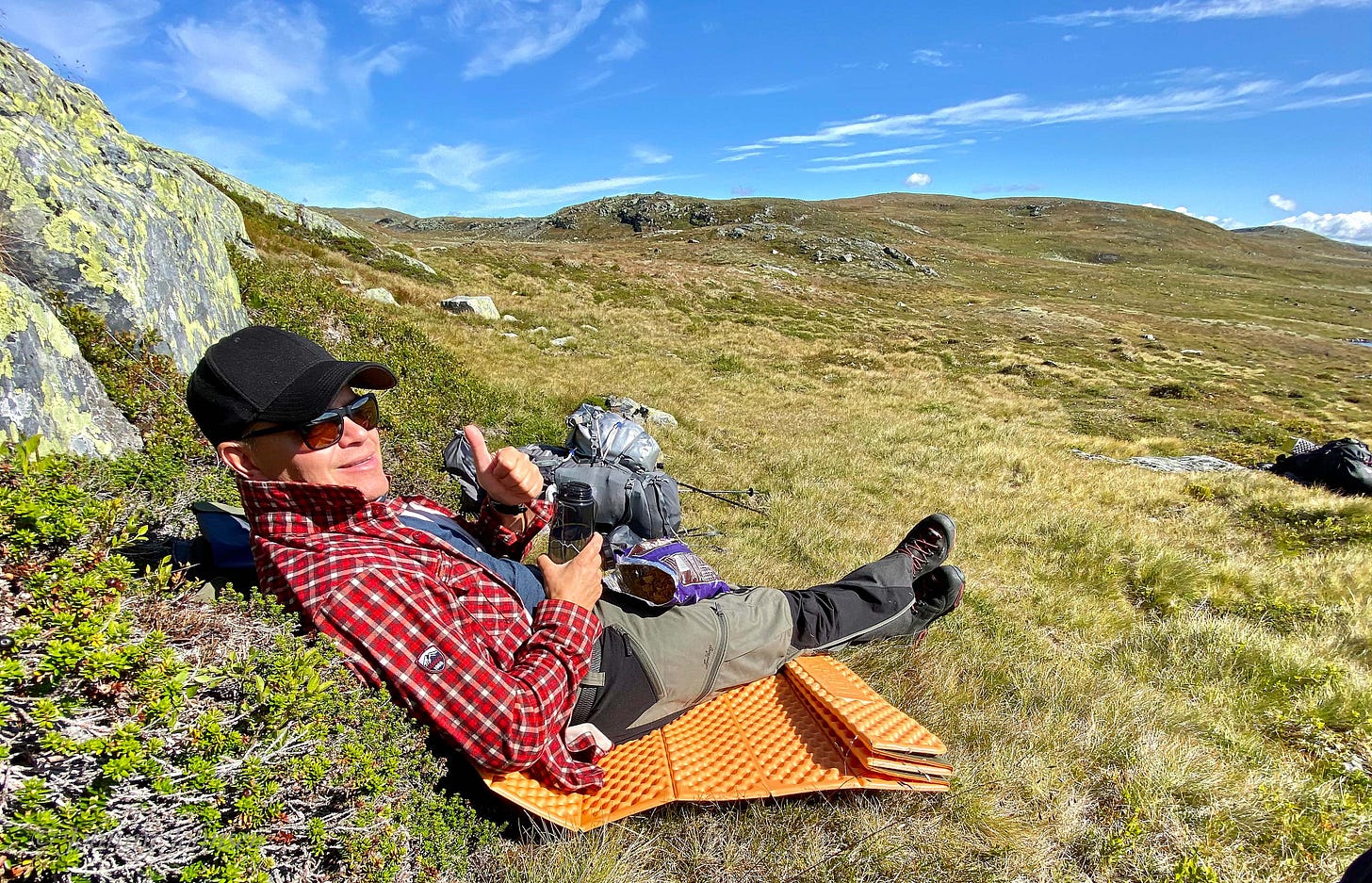 Det var ikke en fantastisk flott plass, men det var godt å ligge i sola å bare nyte det å være på tur.