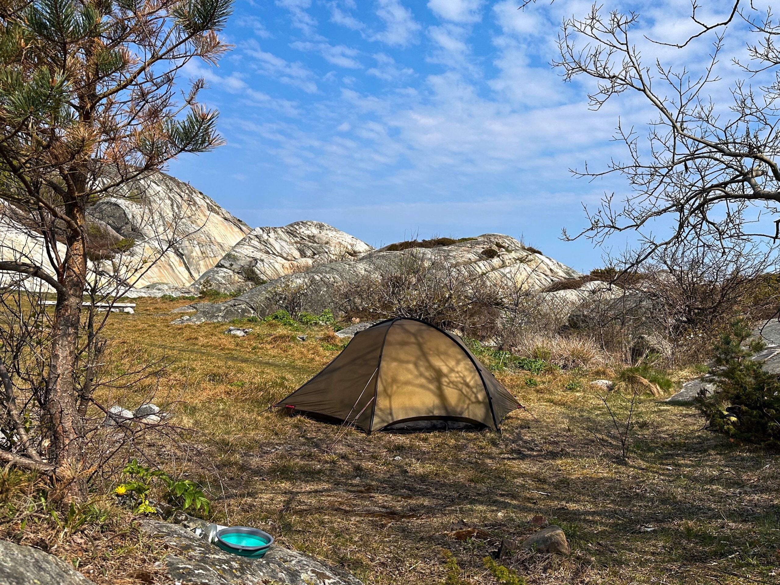 Til mitt Hilleberg Rogen så er det kun mulig å kjøpe bunnduk som dekker innertelt delen, og ikke fortelt delene. I fjor på vår Austheiene tur så slet jeg med en del kondens, og jeg er i sterk troen på at det å dekke til våt bakke i fortelt delene vil forbedre dette.