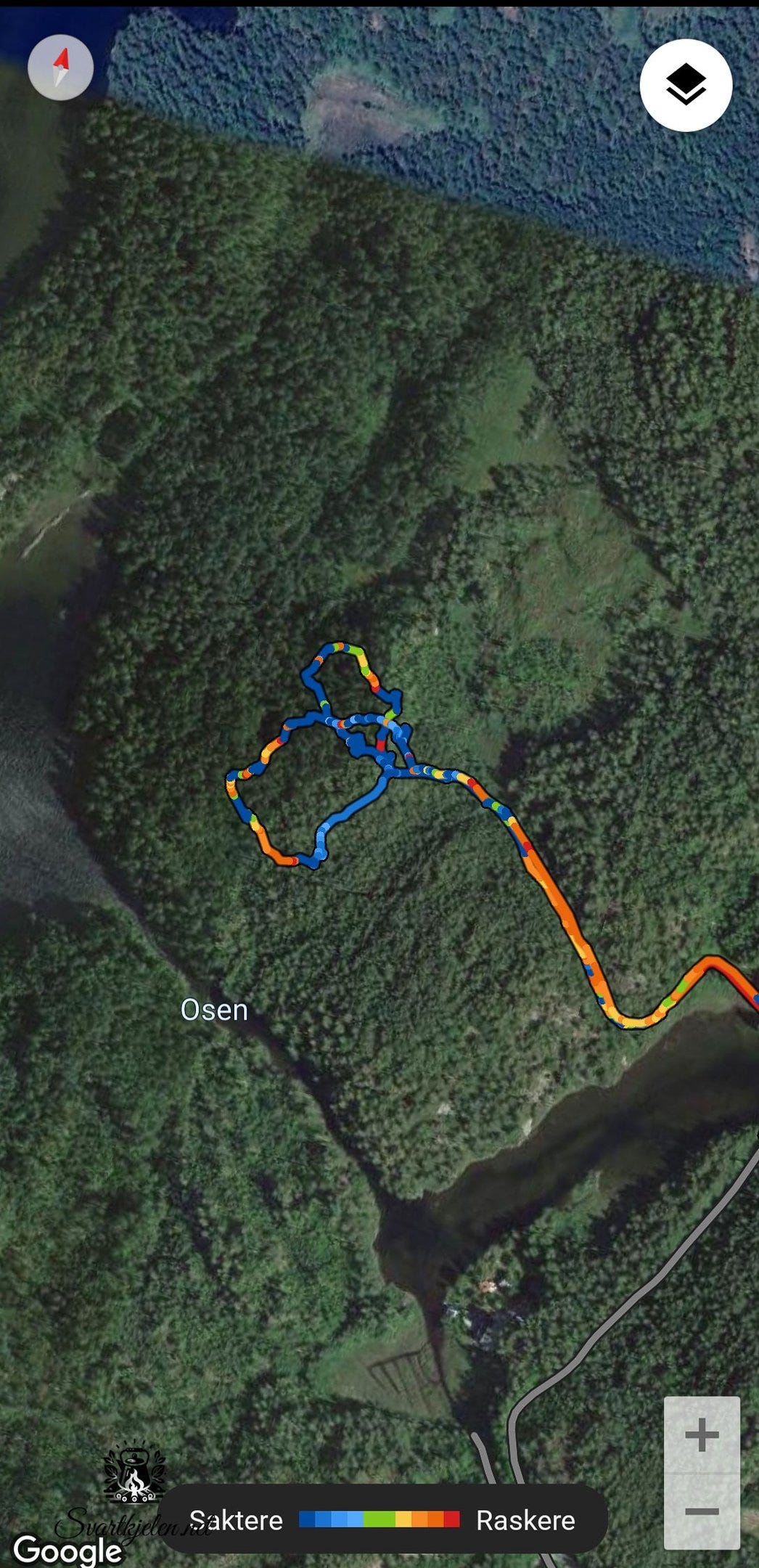 Vi prøvde å gå på sporet av den for å trene King Kenny på å gå hjorten opp igjen, vi fulgte sporet litt slurvete, men havnet faktisk tilbake på samme punktet der vi så den ta ut, så er det mulig at vi lyktes :-)