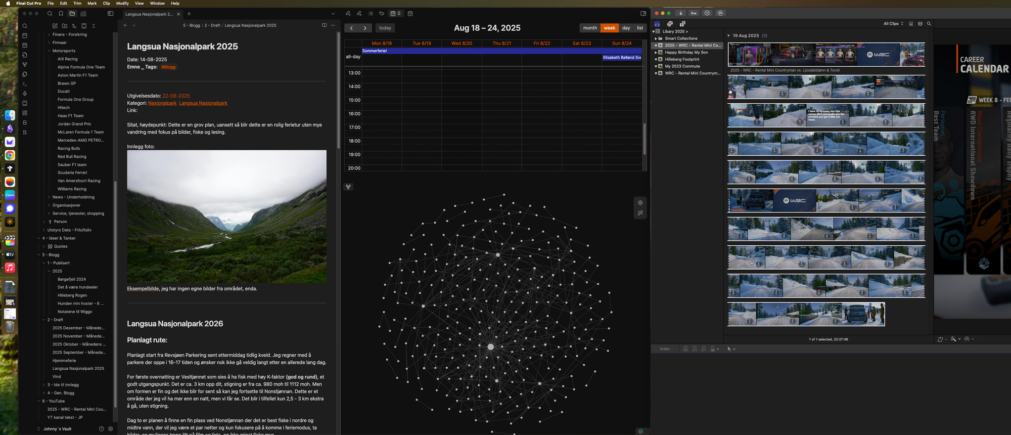 Jeg har kjørt litt WRC på Xbox i det siste, og det er jo sterkt vanedannende. I min iver etter å lære litt mer om redigering ol. så tok jeg noen opptak fra Xboxen mens jeg kjørte, eksporterte opptaket til min Mac og satt en hel dag og redigert med FCP, jeg laget også en ny intro til videoen/kanalen. Jeg legger en link til den i bunnen her for moro, den er ikke publisert på min hovedkanal som fortrinnsvis bør handle om friluftsliv, men den er lagt ut på min back up (moro) kanal som stort sett består av YouTube Shorts og et par videoer.