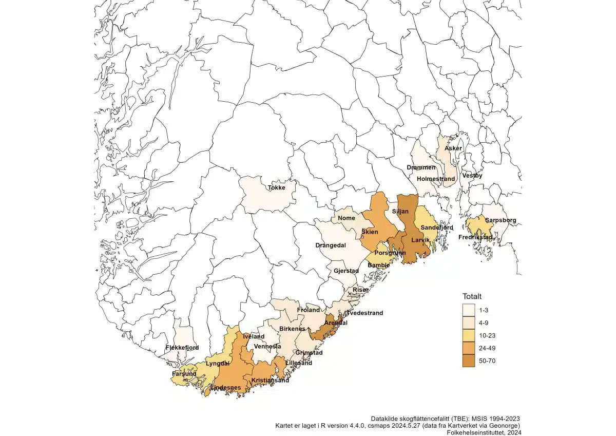 TBE sykdomstilfeller i Norge fra 2017 – 2023