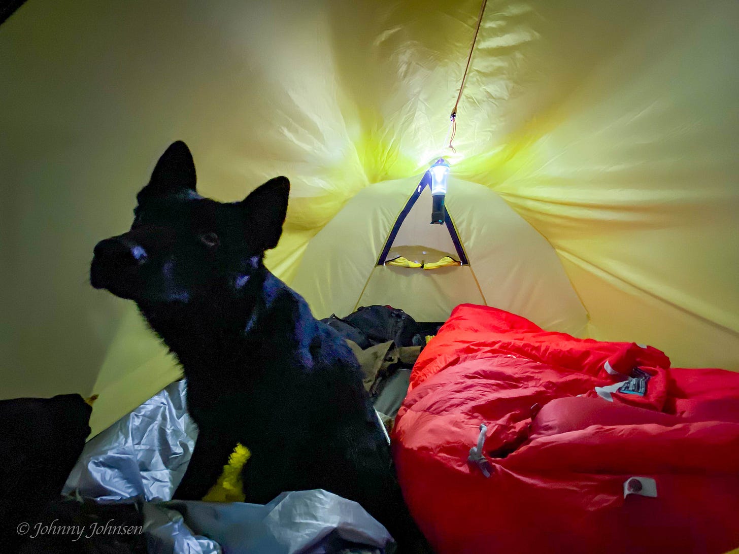 Jeg kan love at det var lærerikt å telte to netter med hund i skikkelig uvær for meg som ikke har gjort dette før.